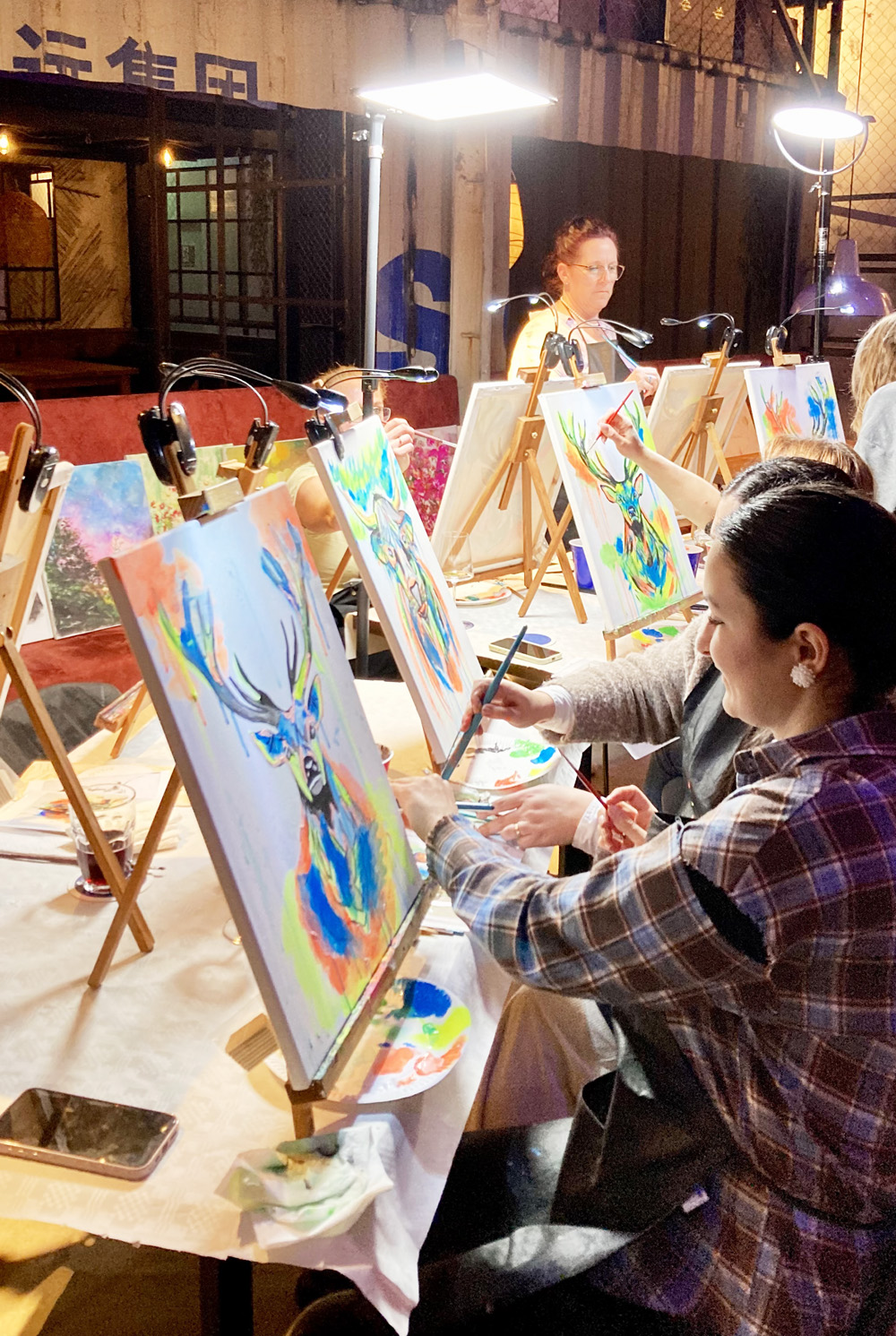Wähle vor Ort aus, ob du den Hirsch oder die Kuh malen möchtest – jedes Bild wird so zu einem einzigartigen Kunstwerk. Auch in der Farbgestaltung bist du völlig frei – wähle die Farben, die deinen eigenen Ausdruck und deine Stimmung widerspiegeln.