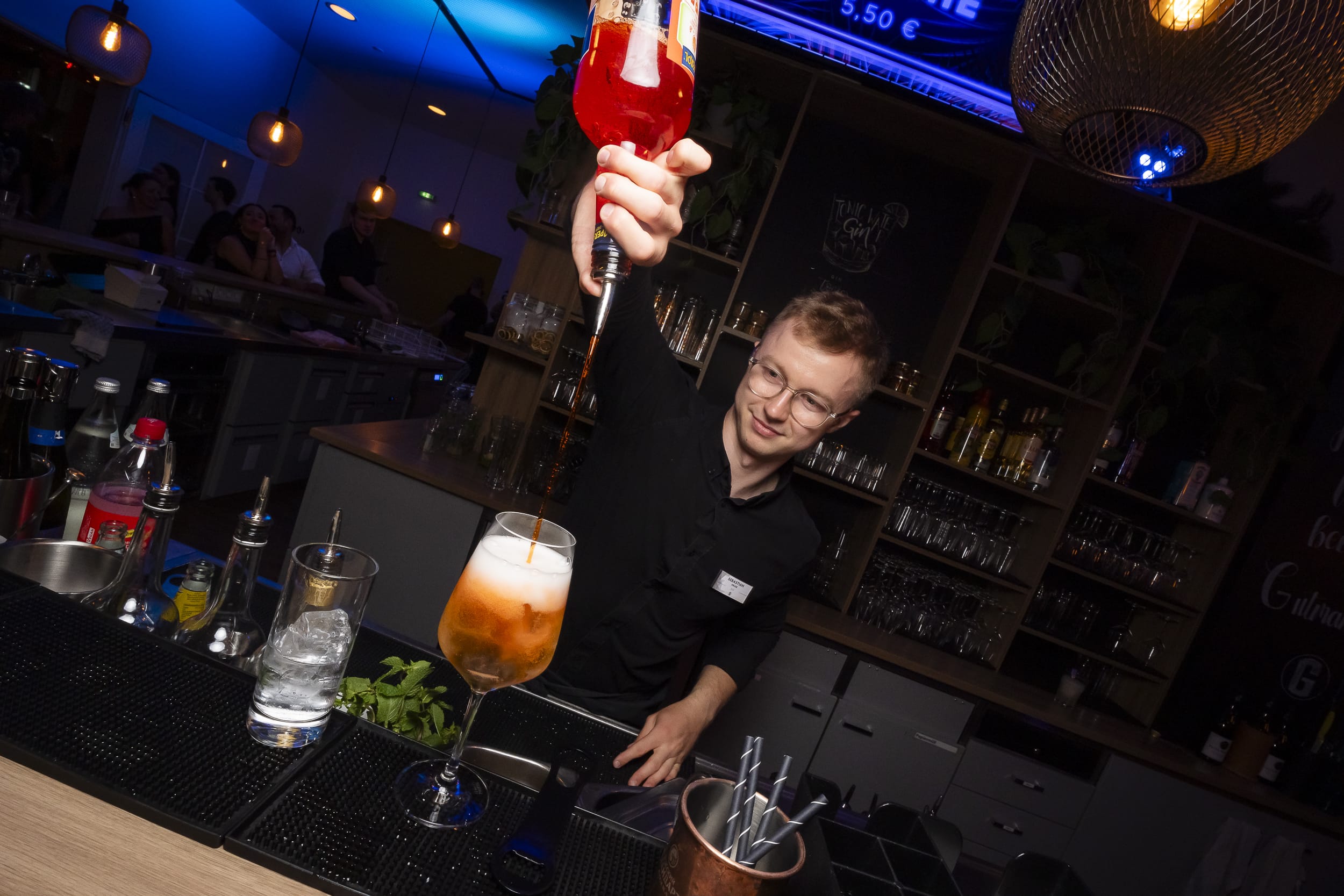 Dazu gibt es Cocktails, leckeres Fingerfood und einen gemütlichen Lounge-Bereich.